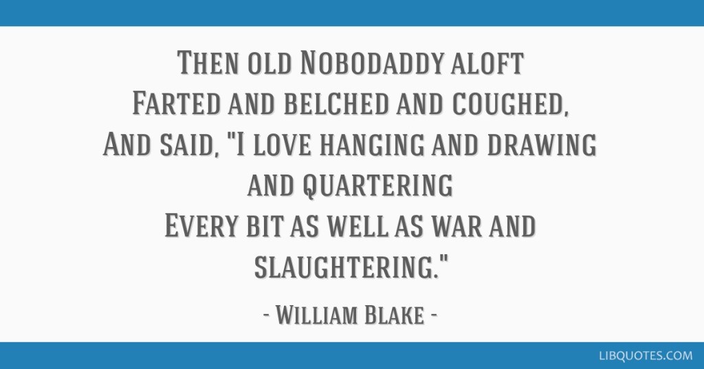 What God is he, writes laws of peace, & clothes him in a tempest What pitying Angel lusts for tears, and fans himself with sighs What crawling villain preaches abstinence & wraps himself In fat of lambs? no more I follow, no more obedience pay!