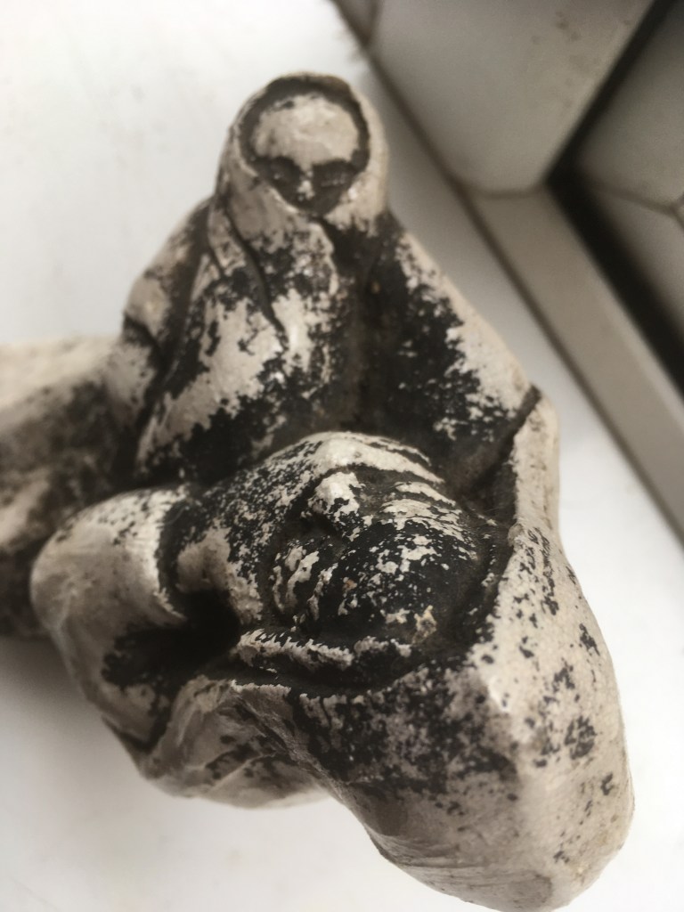 Many shovels later, one of the lads found ‘The Mother and Child, under a pile of dirty wet rubble. No longer pure white, but intact. Not damaged? Of course it was damaged, because it’s purity had gone. Blackened. But not dirty. Maybe it’s a different kind of purity? In a mysterious way, ‘Mother and Child’ felt holy: ‘set-apart’ for a purpose, which is what ‘holy’ means.